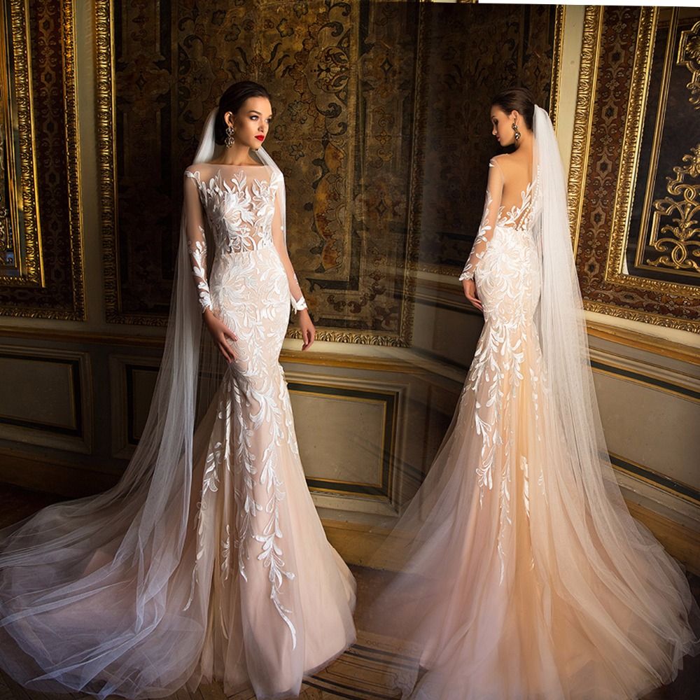 Ericdress offers customers lace mermaid bridal gowns winter long sleeve wedding dresses plus size wedding gowns and other dresses for brides. Sexy backless lace mermaid cheap wedding dresses online long sleeves bridal dresses wd441 the wedding dresses are fully lined 8 bones in the bodice chest pad in the bust lace up back or zipper back are all available total 126 colors are available this dress could be custom made there are no extra cost to do custom size and color. See our craftsmanship first hand featuring top runway trends many fabrics and close attention to detail.