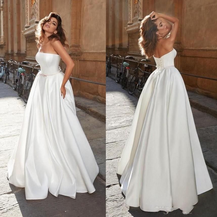 Discount Modern Strapless Wedding Dress 2020 Simple Designed Satin