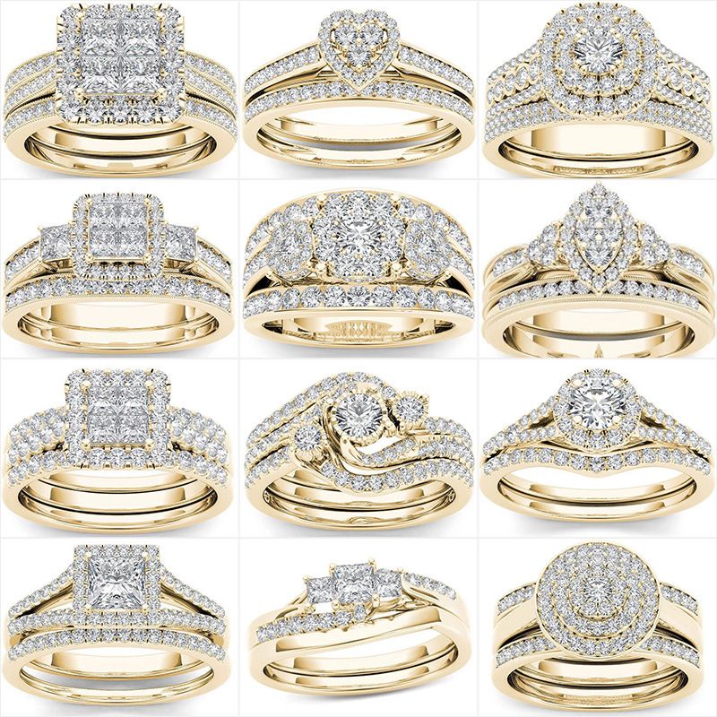 Exquisite 2pcs Set 18k Gold White Sapphire Diamond Ring Set
