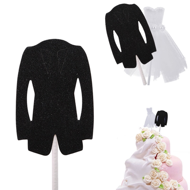 2pcs Glitter Paper Wedding Cake Topper Lovely Dress Wedding