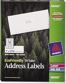 Amazon Com Avery White Ecofriendly Address Labels 1 X 2 625 Inches Box Of 3000 48460 Office Products