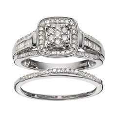 Wedding ring with halo. Halo rings are almost as classic as solitaires but with a stylish twist. This set also features a perfectly matching wedding ring studded with cubic zirconia stones. Their current resurgence has rocketed halo rings to second place behind the classic solitaire as the most favored style of engagement ring.