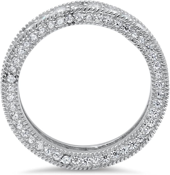 Amazon Com Metal Factory 925 Sterling Silver Cubic Zirconia Cz Vintage Milgrain Eternity Band Ring Jewelry